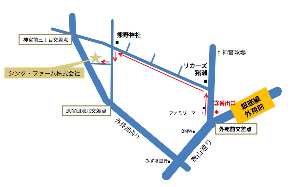 アクセス 東京メトロ銀座線 外苑前駅より徒歩7分